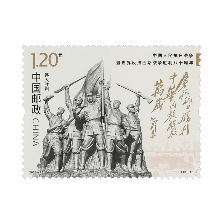 根据党中央有关中国人民抗日战争暨世界反法西斯战争胜利80周年纪念活动安排,中国邮政于2025年9月3日发行《中国人民抗日战争暨世界反法西斯战争胜利八十周年》纪念邮票1套13枚、小型张1枚,全套面值为20.8元。邮票计划发行数量为600万套、小型张为500万枚。