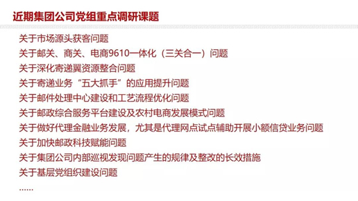 结合邮政资源优势和发展现状,刘爱力指出,邮储银行要充分利用渠道优势、客户优势、资产规模优势,加快科技赋能,推动“五化”转型,打造成为一流的零售商业银行;寄递业务要坚定不移深化改革,以“三个视角”“三个规律”“五大抓手”,实现“五个突破”,将邮政寄递业务打造成行业的“国家队”;中邮保险要打造成为邮政新的增长极。