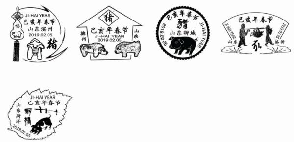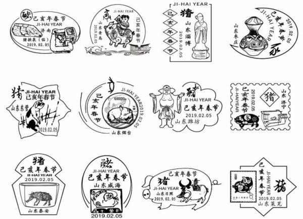为迎接己亥猪年的到来,向齐鲁人民和海内外亲朋好友祝福,山东省特于2019年2月5日,即猪年的正月初一推出“2019己亥年春节拜年系列纪念戳”一套17枚,分别在l7城市(区)邮政中心局设专柜,供社会各界和集邮爱好者收藏。