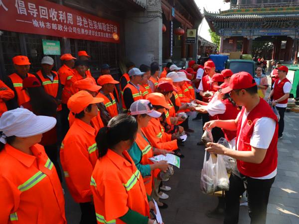 榆林市分公司包裹快递部党支部全体党员和志愿者来到榆林老街环卫工爱心驿站,为环卫工人送上粽子等慰问品,献出属于邮政人的一份爱心。