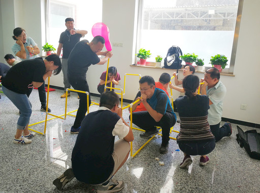 “呼吸的力量”环节中,每个小组得到一张“呼吸机”的搭建图纸和部分搭建材料,仅有一位组员可看见图纸,需向其他组员描述图纸内容,并配合大家搭建好“呼吸机”。“指压板上的挑战”环节中,下设双人跳绳、背重物、“人体锤”等几个小项目。两个项目均考验了团队的沟通能力、信息传达效率、执行力和凝聚力。  □杨光  张建勤  摄影报道