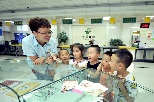 “阿姨,邮票贴在信封上,妈妈就能收到信了吗?”“阿姨,您帮我盖个戳吧!我每次在学校里表现好,老师就给我盖一个。”