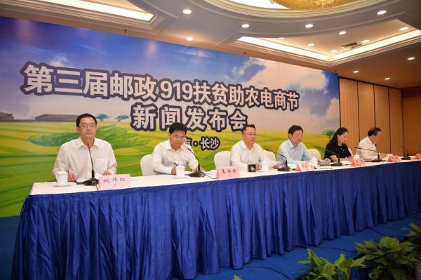9月5日上午,湖南邮政第三届“邮政919扶贫助农电商节”在长沙正式启动。湖南邮政持续深化电商扶贫,结合“农民丰收节”,借助中国邮政第三届邮政“919”丰收欢乐购活动契机,积极开展名优工业品下乡和绿色农产品进城,帮助农民增收致富,服务乡村振兴战略,助力脱贫攻坚战。活动主题为“湘情湘味,邮乐邮你”。
