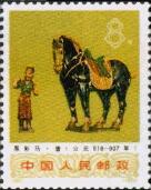 编68,8分,图案为“黑彩马”,1971年在河南洛阳关林唐墓中出土。