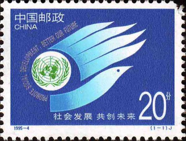 国家邮政局1995年3月6日发行《社会发展 共创未来》纪念邮票1套1枚。