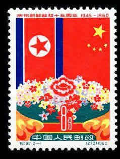 『发行背景』 1945年8月15日,朝鲜人民在苏联红军配合下获得解放,但朝鲜南半部被美军占领。1948年9月,朝鲜民主主义共和国正式宣告成立。而南方则于1949年8月成立了大韩民国(简称韩国)。为庆祝朝鲜解放15周年,邮电部发行了这套“庆祝朝鲜解放十五周年”纪念邮票,编号纪82,全套2枚,表现了中朝两国的友谊和朝鲜的经济建设。