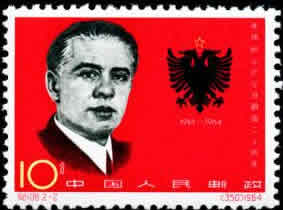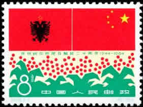 (349)8分 中阿友谊 600万枚 (350)10分 胜利属于阿尔巴尼亚 200万枚 1964.11.29。影写版。P11×11.5。40mm×30mm。50(5×10)。[G]。刘硕仁。北京邮票厂。