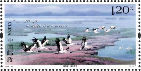 中国邮政2019年7月20日发行《鄱阳湖》特种邮票1套3枚。