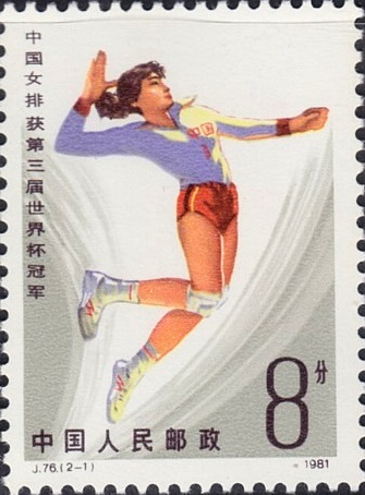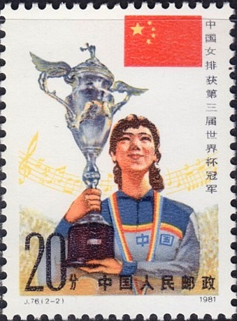 1981年11月16日,在日本举行的世界杯排球赛上,中国女排以七战七胜的成绩,一举击败了各路劲旅夺得冠军,开始了五连冠的胜利征程。日本女队获本届比赛亚军,苏联女队获第三名。这次比赛牵动了亿万中国人的心,振奋了民族精神。本套邮票共2枚。