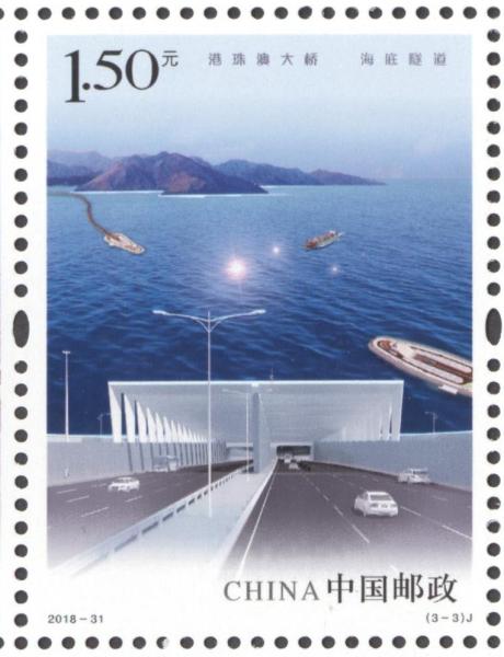 中国邮政2018年10月30日发行《港珠澳大桥》纪念邮票1套3枚。