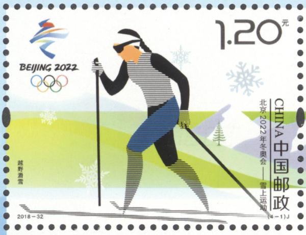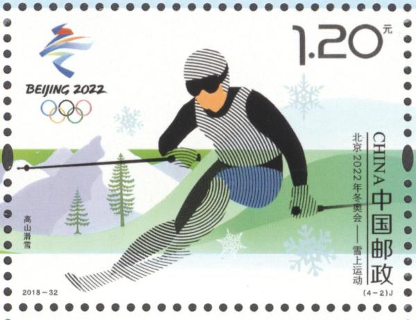 中国邮政2018年11月16日发行《北京2022年冬奥会——雪上运动》纪念邮票1套4枚。