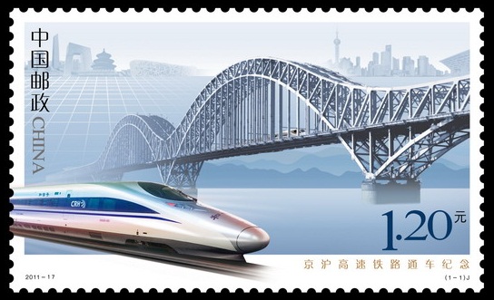 中国邮政2011年6月30日发行《京沪高速铁路通车纪念》纪念邮票1套1枚。