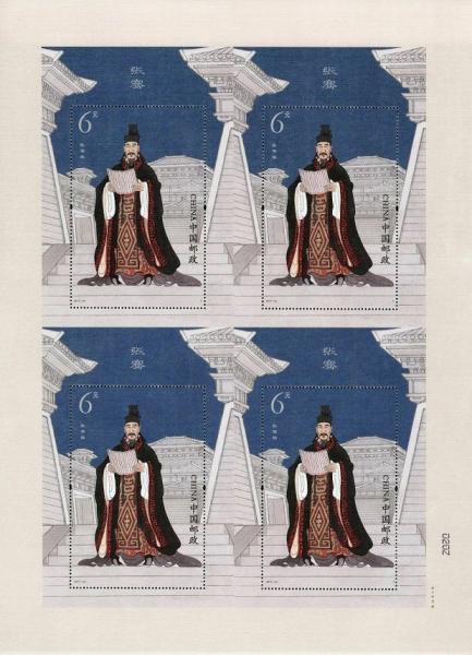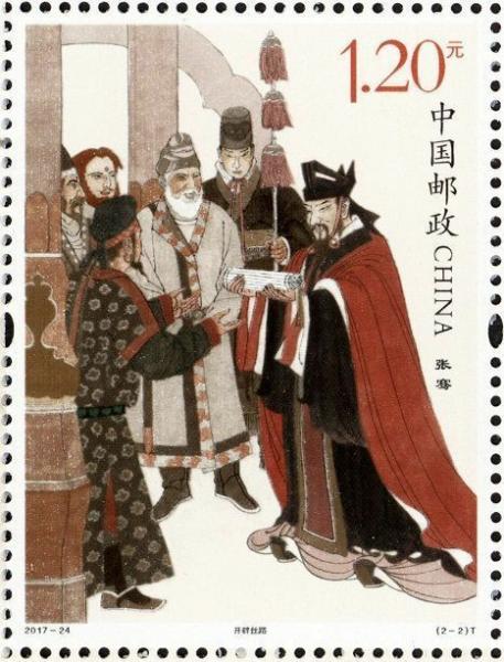 中国邮政2017年9月20日发行《张骞》特种邮票1套2枚,小型张1枚。