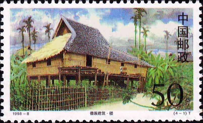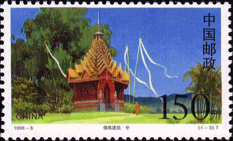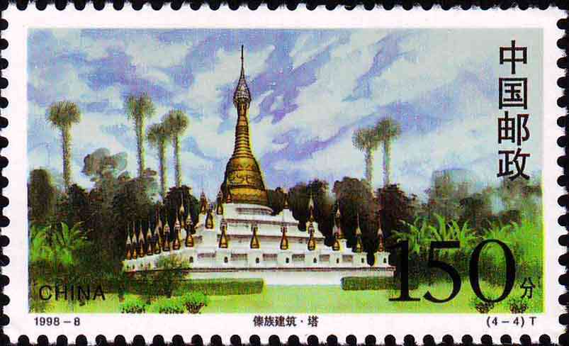 国家邮政局1998年4月12日发行《傣族建筑》特种邮票1套4枚。