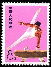 现代体操19世纪中期传入中国。1908年上海成立了中国体操学校。中华人民共和国成立后,体操得到迅速发展。1951年开始在全国推行广播体操。自50年代,中国体操队参加世界体操锦标赛等各项比赛取得较好成绩。1956年中国体操协会加入国际体操联合会。1958年第14届世界体操锦标赛中,男女队分获团体第十一名、第七名。1962年世界体操锦标赛中,男女队分获第四名、第六名。1963年新兴力量运动会体操比赛中,中国男女队分获团体亚军,在全能和单项比赛中获八枚金牌、三枚银牌、十枚铜牌。1974年第七届亚运会,中国体操男女队双获团体冠军,在全能和单项比赛中获六枚金牌、八枚银牌和两枚铜牌。为纪念中国体操运动取得的成绩,邮电部特发行此套邮票。