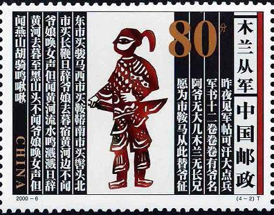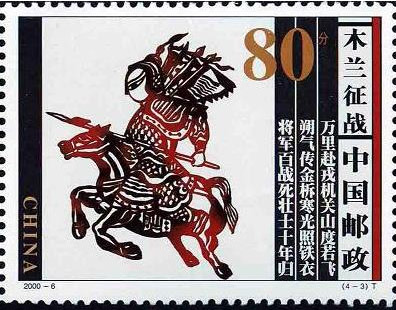 国家邮政局2000年4月30日发行《木兰从军》特种邮票1套4枚。