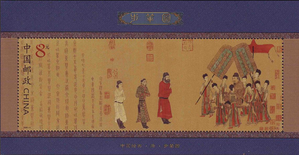 国家邮政局2002年3月16日发行《步辇图》小型张1枚。