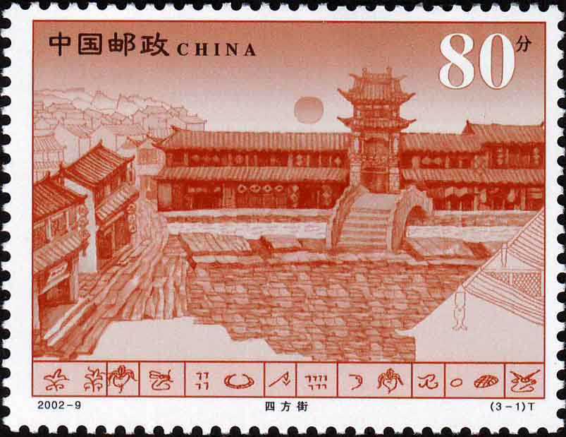 国家邮政局2002年5月1日发行《丽江古城》特种邮票1套3枚。