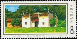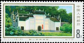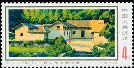 (1) 4分 韶山毛主席旧居 1000万枚 (2) 8分 韶山农民夜校旧址 1000万枚 (3) 8分 韶山农民协会旧址 500万枚 (4)10分 韶山火车站 200万枚 1976.12.26。影写版。P11×11.5。60mm×30mm。30(3×10)。[G]。许彦博。北京邮票厂。