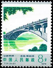 (1) 8分 川西三号桥 2000万枚 (2) 8分 无锡新虹桥 2000万枚 (3) 8分 丰都九溪沟桥 2000万枚 (4) 8分 川西六号桥 2000万枚 (5)60分 三门上叶桥 2000万枚 1978.11.1。影写版。P11.5×11。30mm×40mm。50(10×5)。卢天骄。北京邮票厂。