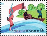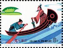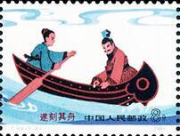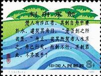 (1)8分 刻舟求剑 1165.8万枚 (2)8分 楚人涉江 1165.8万枚 (3)8分 剑坠于水 1165.8万枚 (4)8分 遂刻其舟 1165.8万枚 (5)8分 入水求之 1165.8万枚 1981.3.10。影写版。P11×11.5。40mm×30mm。50(5×10)。5枚连印。潘可明。北京邮票厂。