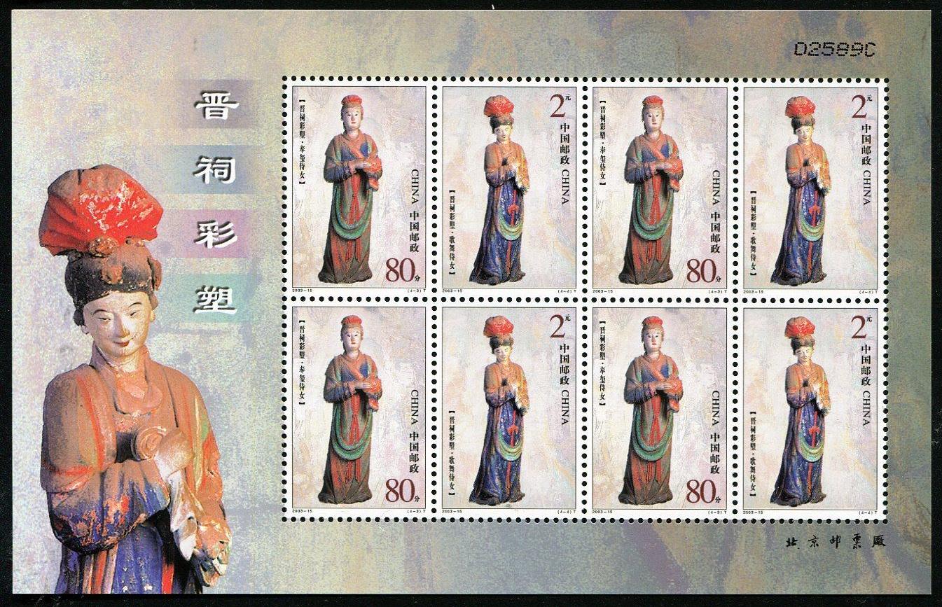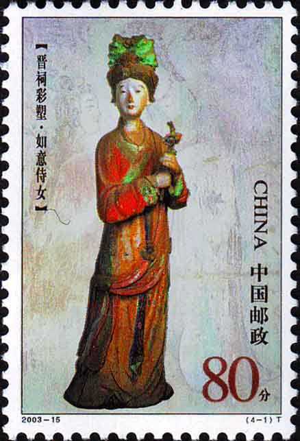 国家邮政局2003年8月16日发行《晋祠彩塑》特种邮票1套4枚。