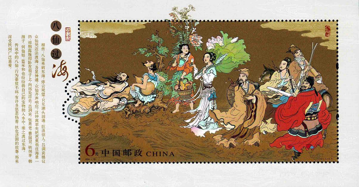 国家邮政局2004年7月30日发行小型张《神话——八仙过海》。