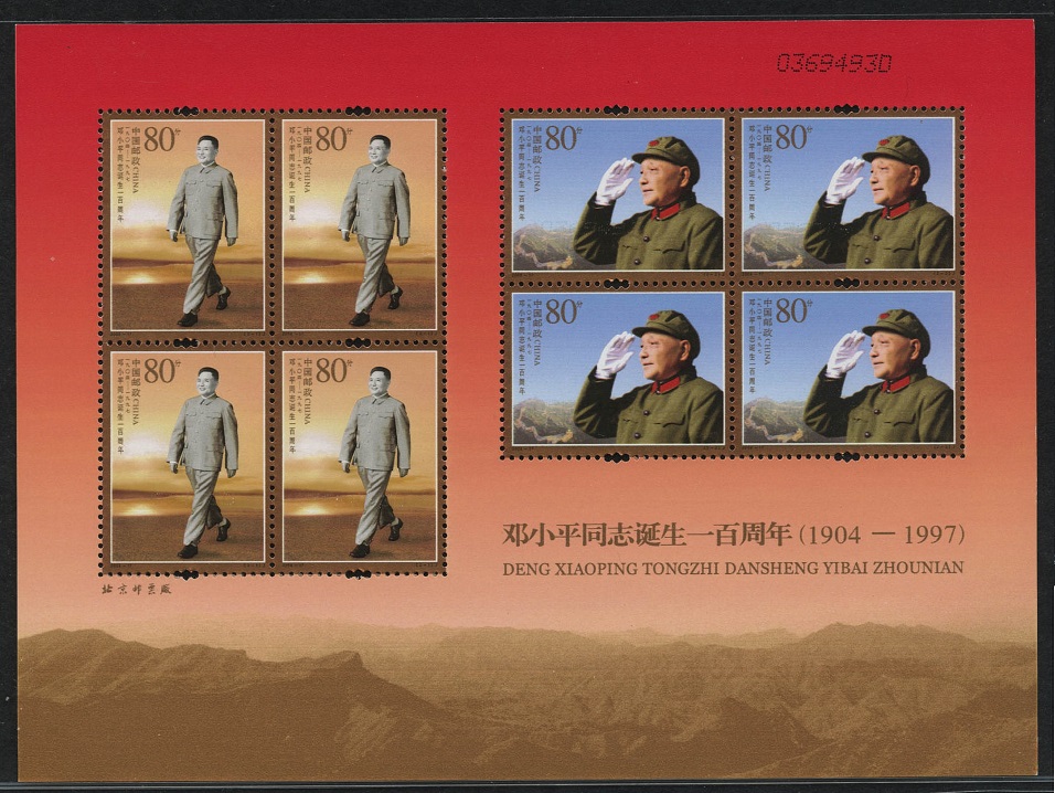 国家邮政局2004年8月22日发行《邓小平同志诞生一百周年》纪念邮票1套2枚。