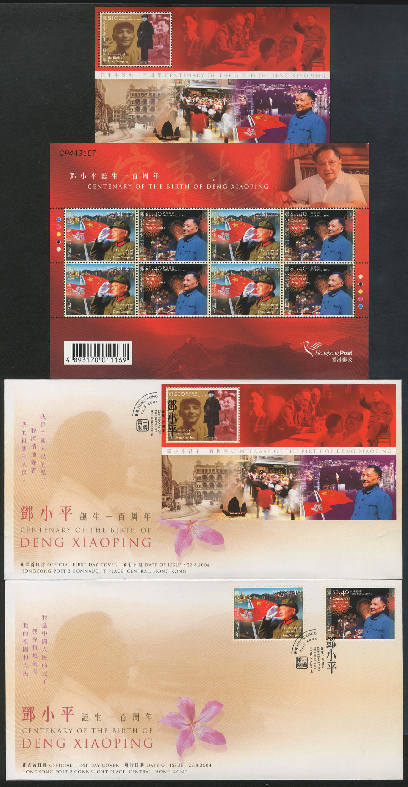 P.S. 香港和澳门特区邮政22日分别发行新邮品,纪念邓小平诞辰100周年。这也是国家邮政局和港澳邮政部门第四次以相同主题联合发行特别邮票。 (香港发行邮品图、澳门发行邮品图)