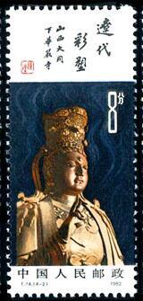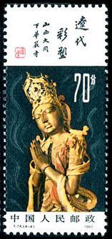 菩萨立像,是华严寺彩塑中最精美、最动人的作品。菩萨头戴玲珑剔透的宝冠,身微向左倾侧,腰胯轻扭,双手当胸合十而立,姿态优美。面容圆浑柔美。细眉修目,眼眸俯视,露齿微笑,表情含蓄娴雅,璎珞满身,轻纱般的帔绕过双臂,垂于足下,飘若风动。菩萨体躯丰腴饱满,遍身彩妆,绚丽多姿,和谐典雅,显示了辽代彩塑所达到的高超的艺术水平。