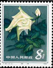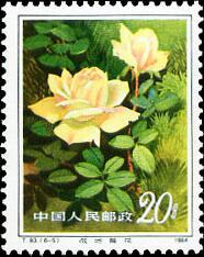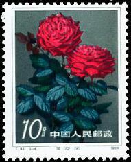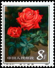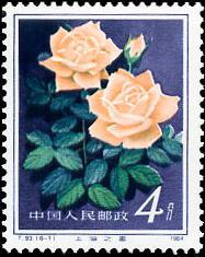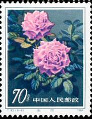 其中第二枚“浦江朝霞”是由上海工人毛洪元培育出来的。他以法国的“露西克雷风”作母本,配以德国的“自由之钟”作文本,培育出优秀的“浦江朝霞”新的月季花品种。此花有六十五瓣之多,花正面呈血红色,背面涤红色,瓣质厚实,高蕊翅角,不仅美丽鲜艳,且带有金花。上海市月季花协会于1981年把她定名为“浦江朝霞”。