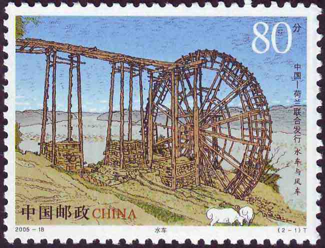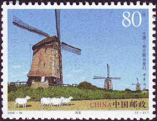 国家邮政局2005年9月22日发行《水车与风车》特种邮票1套2枚(与荷兰联合发行)。