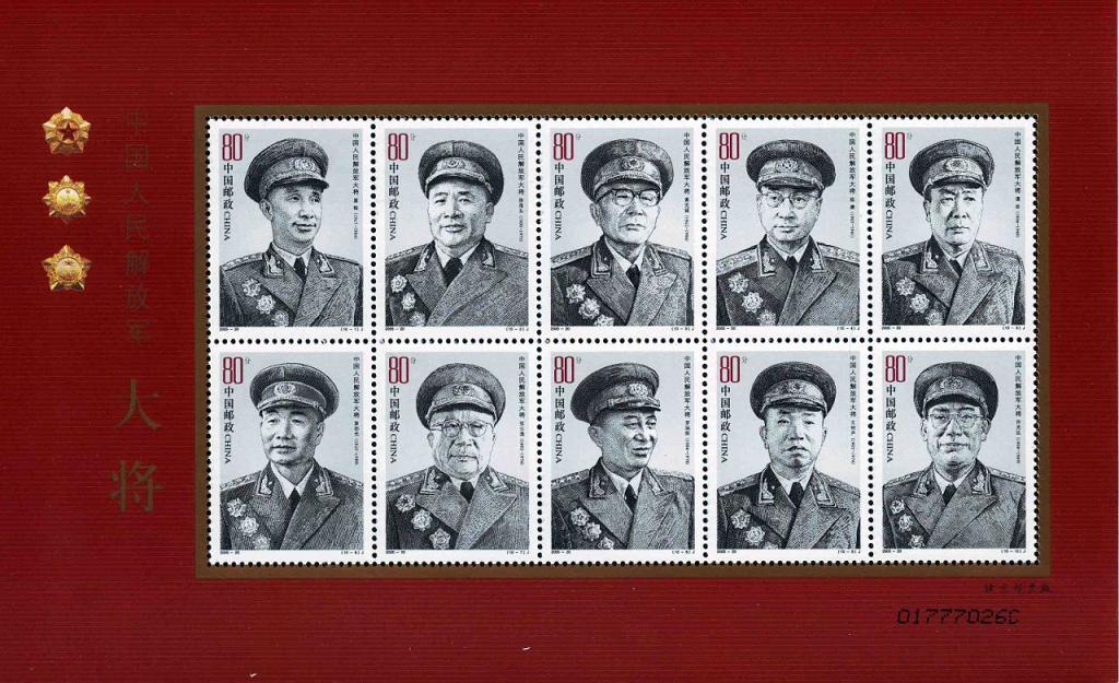 国家邮政局2005年9月27日发行《中国人民解放军大将》纪念邮票1套10枚。
