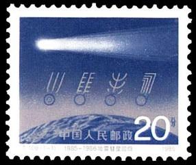 20分 哈雷慧星回归 2811.9万枚 1986.4.11。影写版。P11.5。31mm×26mm。80(10×8)。 [D]袁加。北京邮票厂。 为纪念哈雷慧星时隔76年重返地球,发行此票。