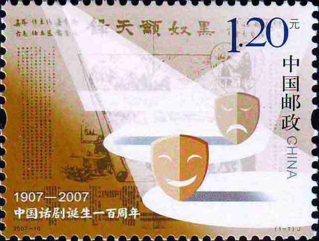 国家邮政局2007年4月6日发行《中国话剧诞生一百周年》纪念邮票1套1枚。