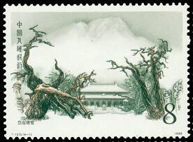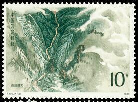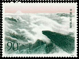 1) 8分 岱庙晴雪 2246.52万枚 (2)10分 盘道通天 1438.40万枚 (3)20分 大观雄峰 1454.55万枚 (4)90分 云海日出 912.84万枚 1988.9.14。影雕套印。P11。54mm×40mm。28(4×7)。 [E]张济平。[D]高品璋、孙鸿年、阎炳武、呼振源。北京邮票厂。