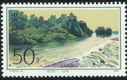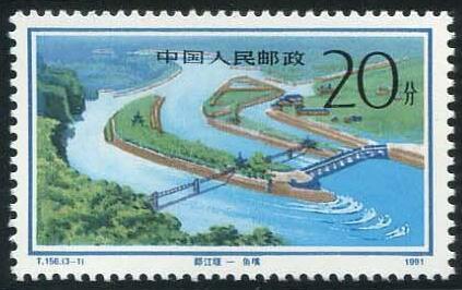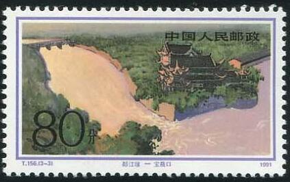 (1)20分 鱼嘴 2535.7万枚 (2)50分 飞沙堰 2525.7万枚 (3)80分 宝瓶口 1589.7万枚 1991.2.20。影写版。P11.5×11。52mm×31mm。40(4×10)。 吴建坤。北京邮票厂。 都江堰位于四川成都平原西部的岷江上,距成都56公里,是二千多年前,中国战国时期秦国蜀郡太守李冰及其子率众修建的一座大型水利工程,是我国现存的最古老而且依旧在灌溉田畴,造福人民的伟大水利工程。