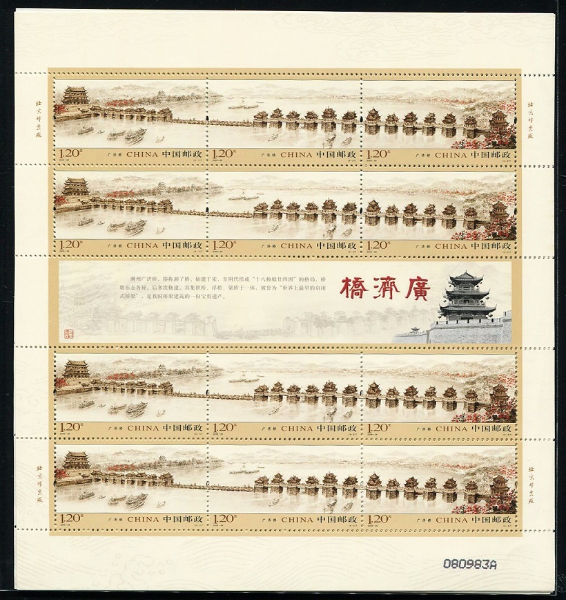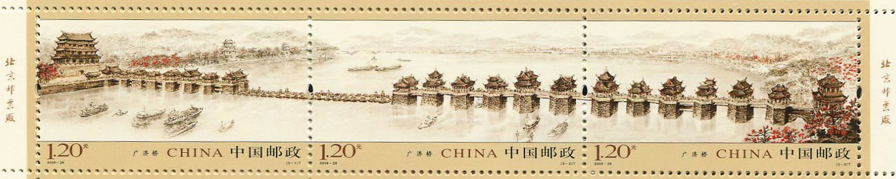国家邮政局2009年11月16日发行《广济桥》特种邮票1套3枚。