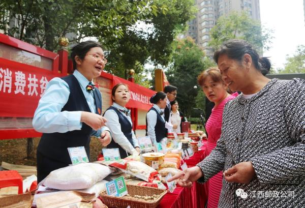10月17日,第6个全国扶贫日。省分公司联合省物业管理行业协会举办的“消费扶贫进社区”活动,走进南昌市世纪中央城小区,通过物业搭台,农村电商、邮政所唱戏,推动农产品、邮政金融进社区。