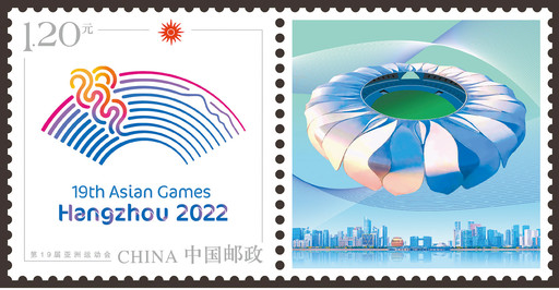 杭州亚运会首枚邮票,精致的票面图案融合了杭州自然景观、城市建筑、亚运会会徽、主场馆等元素。除此之外,为了体现杭州移动互联网之城和智慧城市的特色,还在邮票上叠加了AR科技。通过“赋能亚运”APP或“支付宝”里的AR扫一扫功能,便能将虚拟场景与手机画面完美结合,实时跟踪、立体视频呈现虚拟场景。