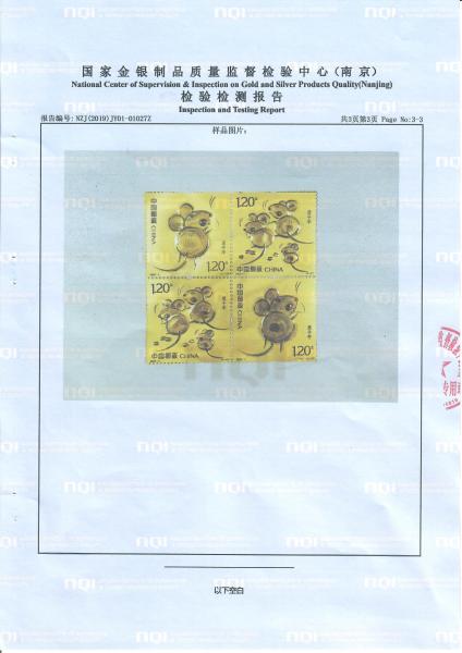 《庚子年》邮票金质检报告