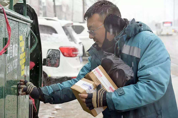 近日,河南大部地区迎来了2020年的首场瑞雪,天气寒冷,道路湿滑,给人们的生产生活带来许多不便。但在风雪中有这么一群人依然坚守岗位,用实际行动坚守“人民邮政为人民”的初心,保障投递、邮运、营业工作顺利进行,他们忙碌的身影成为了风雪中最美丽的风景……