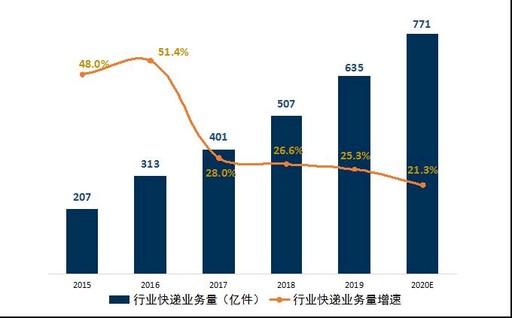 预期增长平稳。根据安信证券、东北证券等券商测算,2019年,国内时效件约占快递业务量的9%,约55亿件,市场以顺丰和邮政为主导。时效快递市场与经济形势密切相关,2020年,中国经济虽面临较大下行压力,但总体平稳,结合安信证券预测及邮政、顺丰时效件近期增长情况,预计2020年,时效快递将保持平稳增长,预期增速为6%左右。