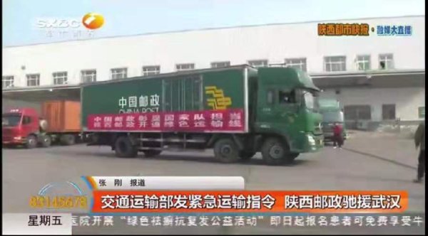 1月31日,中国邮政集团有限公司陕西省分公司接到国家交通运输部的紧急运输任务指令:有一批消毒原液、口罩、速溶消毒泡腾片等应对疫情防控物资需于当日通过邮政紧急由西安运往武汉。省分公司党组对这一任务高度重视,指示要迅速组织力量,保证安全准确地把物资送到武汉,此事也得到了陕西电视台等社会媒体的采访和关注。