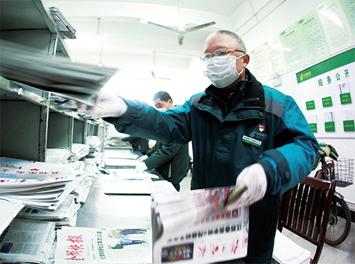 老马分发报刊井井有条。