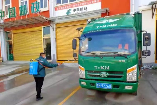 商丘市邮政分公司坚持每日对工作地点及运输车辆进行消毒,为邮件安全保驾护航