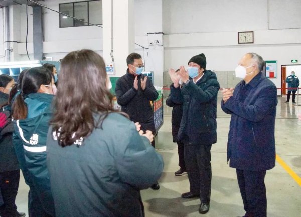 在郑州邮区中心局生产场地,林虎、杨汉振为邮政一线员工送去了抗战疫情急需的口罩等防护用品以及食品。林虎亲切地叮嘱一线人员,要在保护好自己生命安全和身体健康的同时,立足岗位、扎实工作,多为社会做贡献,与全省、全国人民一道,坚决打赢疫情防控阻击战。一线员工们纷纷表示,感谢各级领导对邮政企业基层一线员工的关心关怀,将坚定信心、坚守岗位,用实际行动做好疫情防控各项工作。
