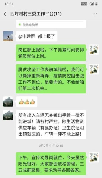 疫情防控期间,作为驻村书记,申建群的主要任务就是与村委干部一起安排所有自然村的卡点值守、党员设岗定责以及居家隔离对象的管控,做好村里车辆、人员出入的检查、登记和劝返工作,向群众宣传疫情防控各项措施和防护要求,尽最大努力争取村民的理解和支持。这些工作看似简单,实则细碎,申建群每天在岗工作都在10个小时以上。春节期间,申建群刚回到西坪村,就得知有4个务工人员从武汉返回。他迅速与村委采取了紧急措施,其中1人在县城有房子,到县城后就地进行了居家隔离,另外3人返回村里,连同与其密切接触的家人等也一并严格地进行了居家隔离。为了落实好防疫工作安排和要求,他和村委班子时刻高度关注,确保不折不扣执行好隔离制度。为保障隔离群众的日常生活,他每隔几天都会送去一些生活物资,并通过微信和电话等形式进行心理疏导,让隔离人员能安心在家。目前,4名武汉务工人员隔离期已过,身体健康均未发现异常,与他们密切接触的人员也安全无恙。申建群悬了多天的心终于落了下来。