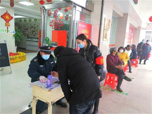 近日,洛阳嵩县分公司各金融网点陆续恢复营业,为切实做好网点疫情防控和生产经营工作,嵩县分公司抽调15名机关党员对网点进行定点帮扶。在嵩县白云中路营业所恢复营业后,为避免客户集中,县分公司党支部安排机关党员到该网点维持秩序,引导客户间隔一米、有序排队。
