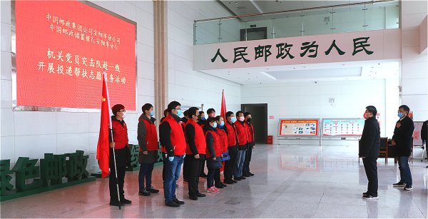 2月28日, 安阳市分公司党委、邮储银行安阳市分行党委联合组建了机关党员突击队,奔赴投递一线,开展志愿帮扶活动。邮银携手,众志成城,圆满完成了投递帮扶任务,提升了邮件投递时效。